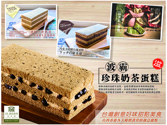 口味:波霸珍珠奶茶蛋糕/宇治抹茶紅豆蛋糕/北海道重乳金萱蛋糕/巧克力炭燒烏龍蛋糕